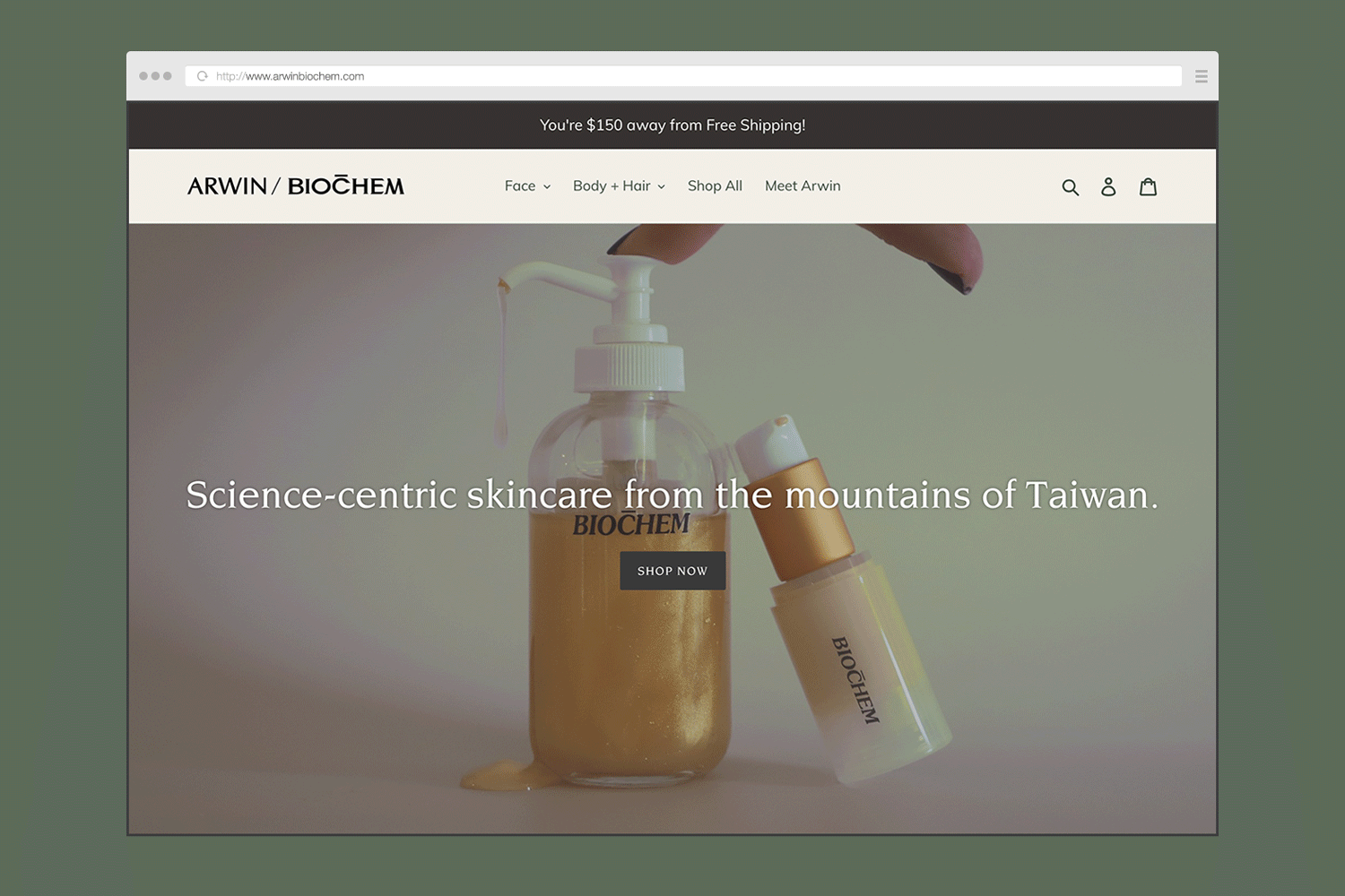 Arwin Biochem is an international personal care brand with a passion for affordable, medical grade skincare that everyone can enjoy regardless of age, gender, or skintype. I worked as the web developer and creative director to integrate Arwin into the US skincare market. I built out Arwin's e-commerce site, and created print and digital branding collateral from business cards and packaging, to full spectrum social media marketing and product photography. I established Arwin's brand identity with an emphasis on their dedication to consumer-consciousness, sustainability, and a science-focused approach to skincare.